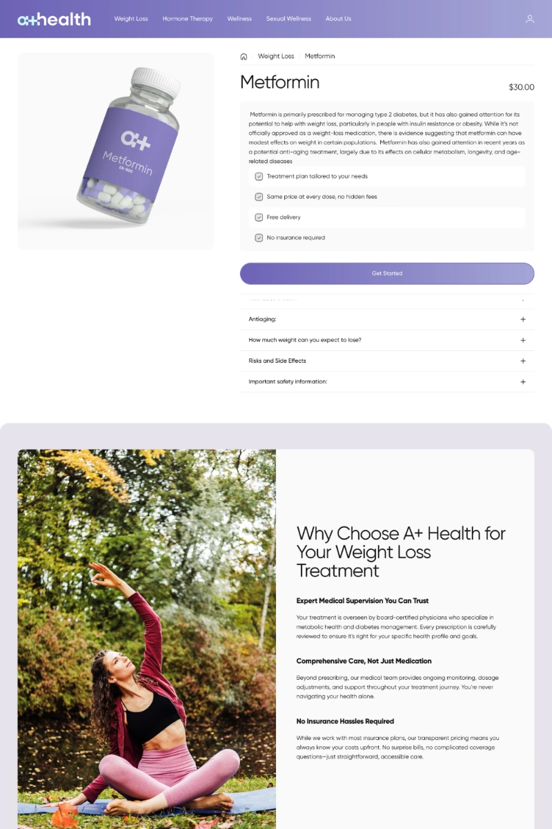 The old A Plus Health website did not have a clear brand presence and lacked a ton of key buying information that made it nearly impossible to give buyers confidence in their purchase.